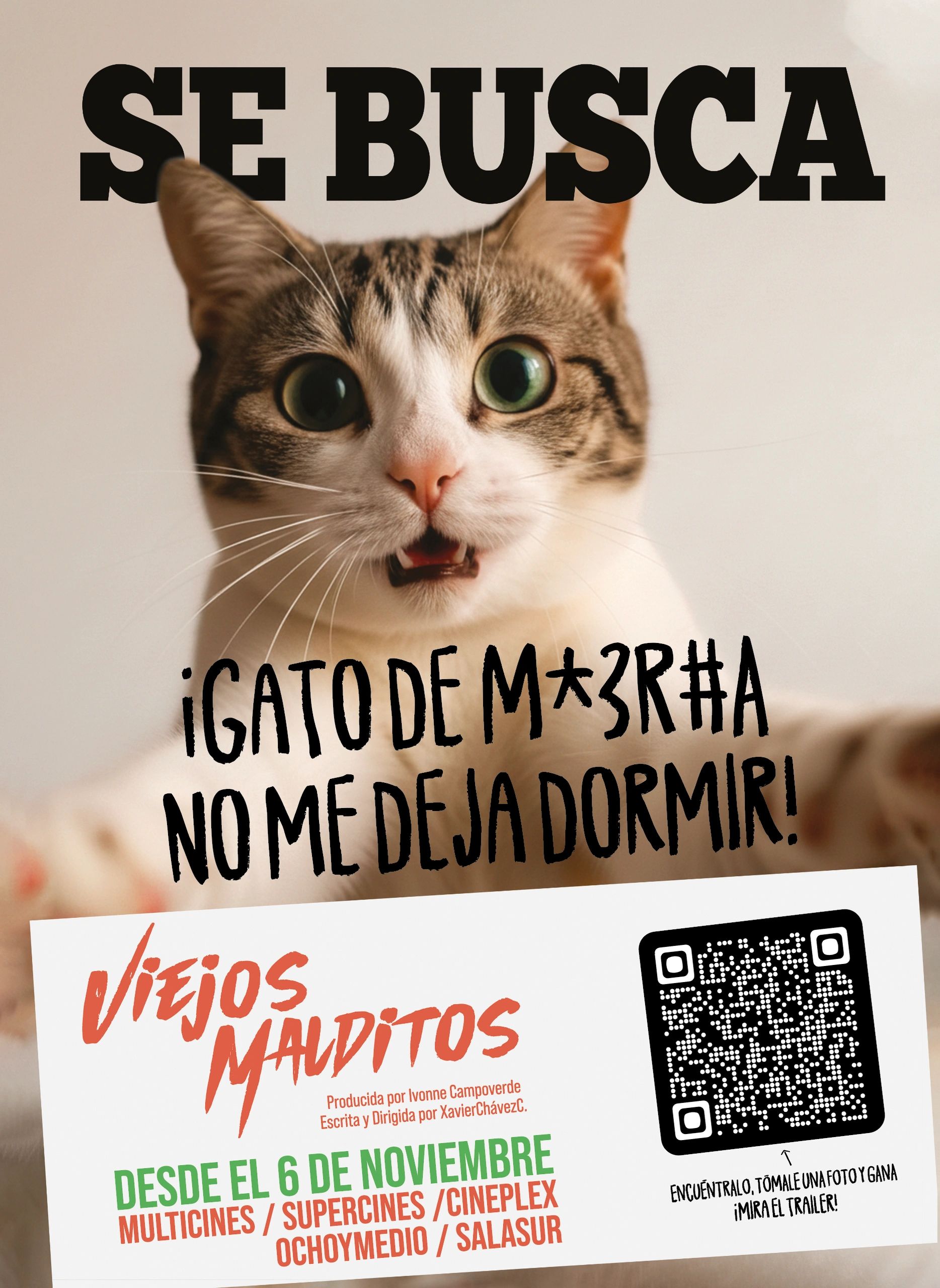 Fácil. Busca este afiche en la ciudad, cuando lo encuentres tómate una selfie y súbele a tu Instagram, pon a @perrosobesoscine o @ViejosMalditos como colaborador y etiqueta a cinco amigos tuyos, envíanos un mensaje de "quiero participar", comparte y entras al sorteo por entradas o naipes de VIEJOS MALDITOS